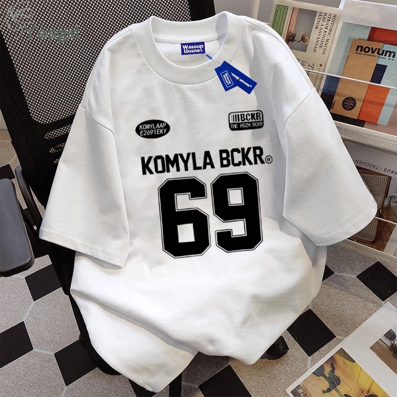 YESGIRL ALFABET KOREA KOMYLA BCKR 69 CETAK KAOS KASUAL LONGGAR| KAOS OVERSIZE WANITA | FASHION KOREAN STYLE BAJU KAOS OVERSIZE| BAJU ATASAN WANITA TERBARU 100COTTON | KAOS PUTIH WANITA | 5.26