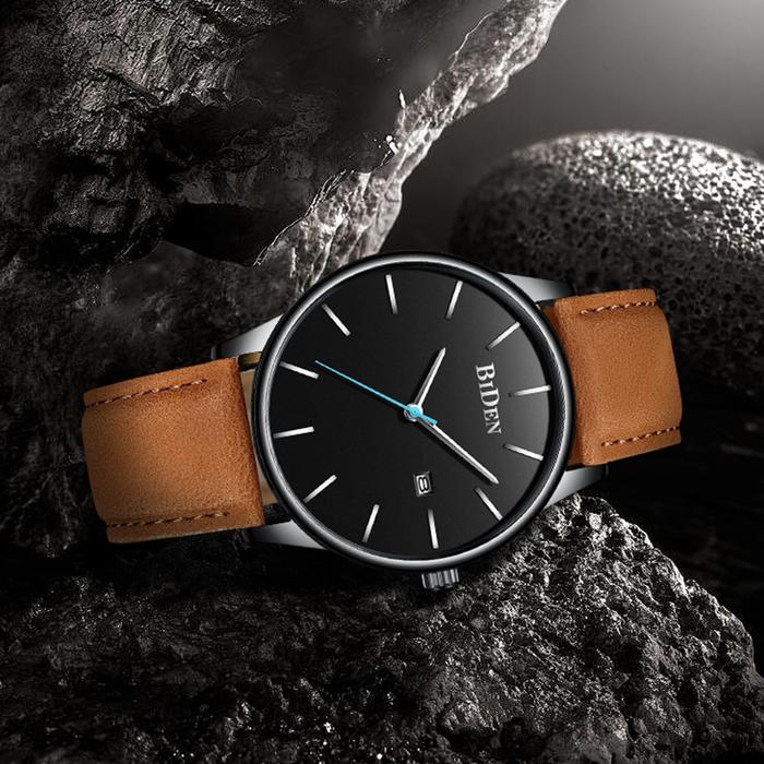 FLASH SALE BIDEN JAM TANGAN PRIA KALENDER BISNIS TALI KULIT JAM TANGAN COWOK COKELAT
