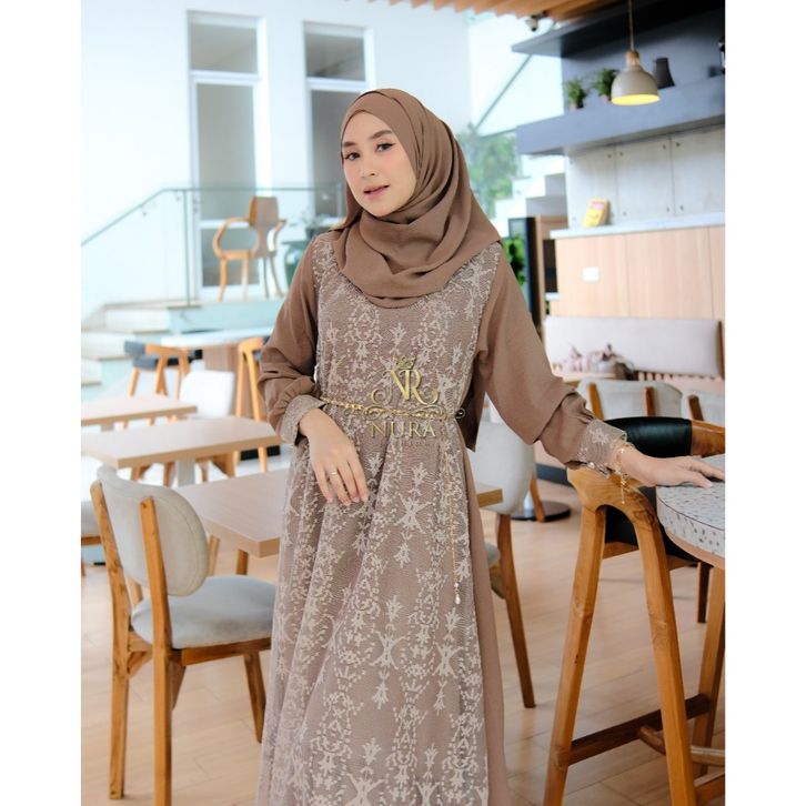 nurra gamis aluna sheeva wanita terbaru 2025 crinkle mix brokat dress kondangan free belt