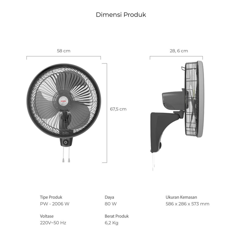 NEW ORIGINAL Maspion Power Wall Fan Kipas Angin Dinding 20 Inch PW-2006 W