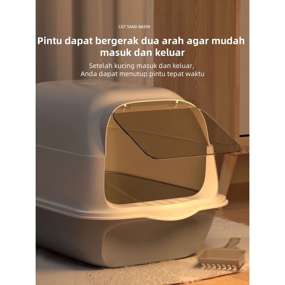 CAT LITTER BOX 2-IN-1 TEMPAT BAK PASIR KUCING KOTAK KOTORAN KUCING DENGAN RUANG EKSTRA BESAR TEMPAT PUP TOILET KUCING
