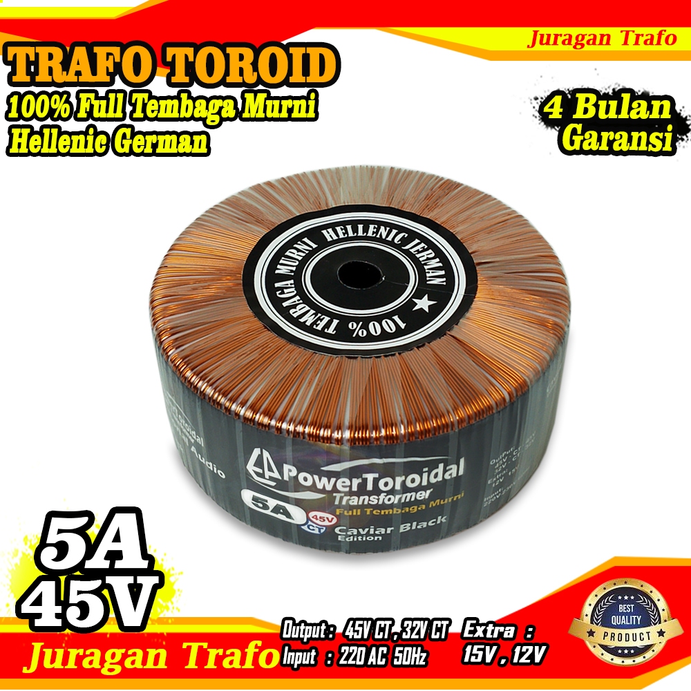 Trafo Toroid Powertoroidal 5A (MURNI) 45V CT 32V CT (Trafo BESAR) Full Tembaga Murni Hellenic German Kualitas Premium