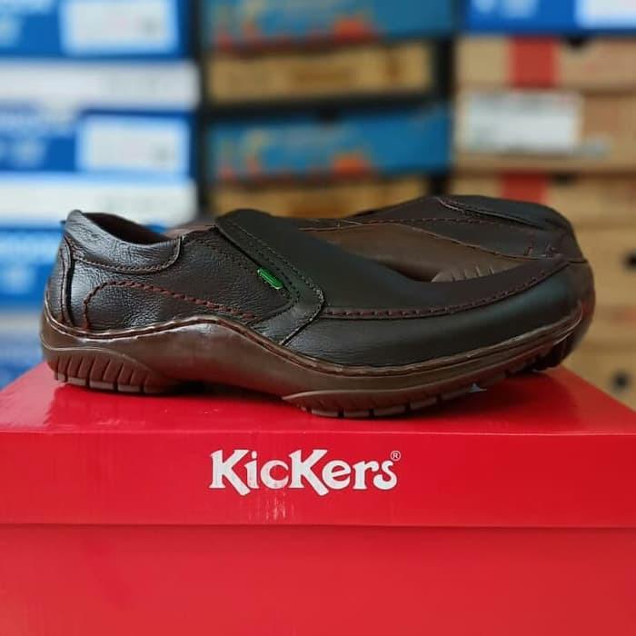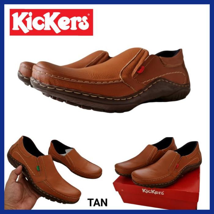 FLASH SALE SEPATU SLIP ON MERK KICKERS ART 275 KULIT ASLI SOL SUDAH JAHIT KELILING HITAM 39