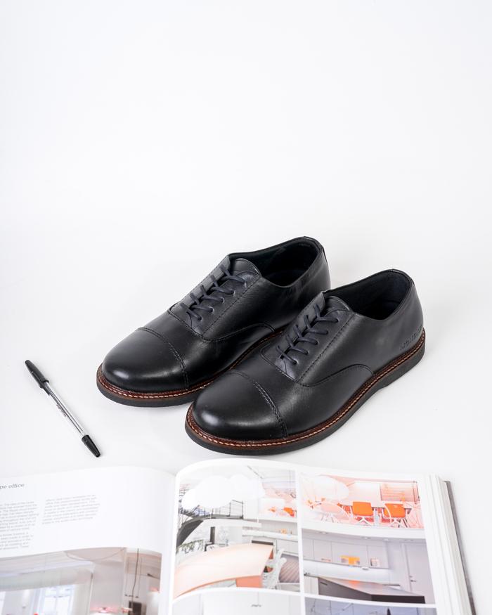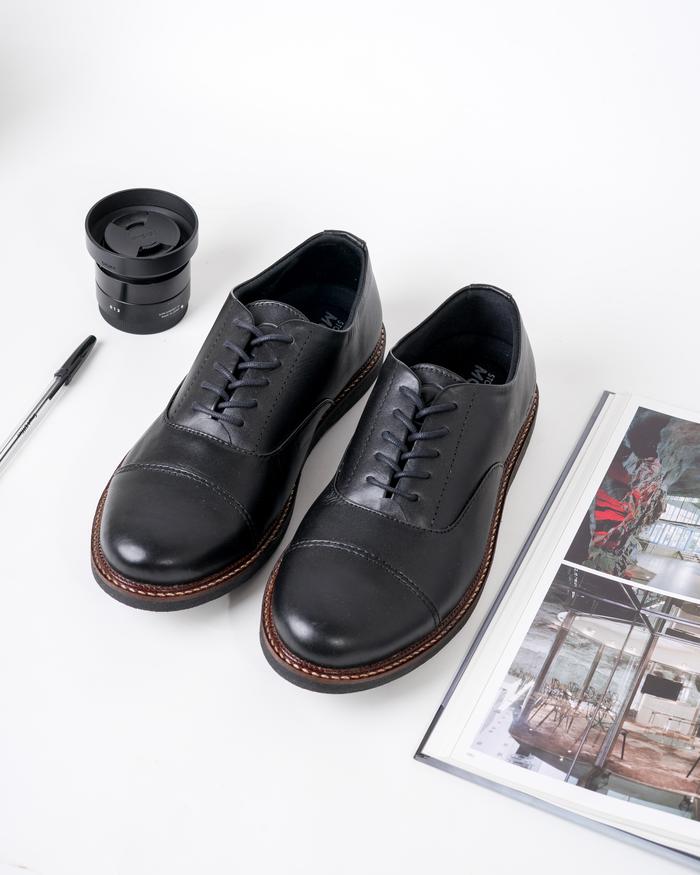Sepatu Kulit Asli Pantofel Forma Pria | Story Of Monday | Oxford Black ( Genuine Leather ) Shoes Kerja Hitam Kasual - Fu
