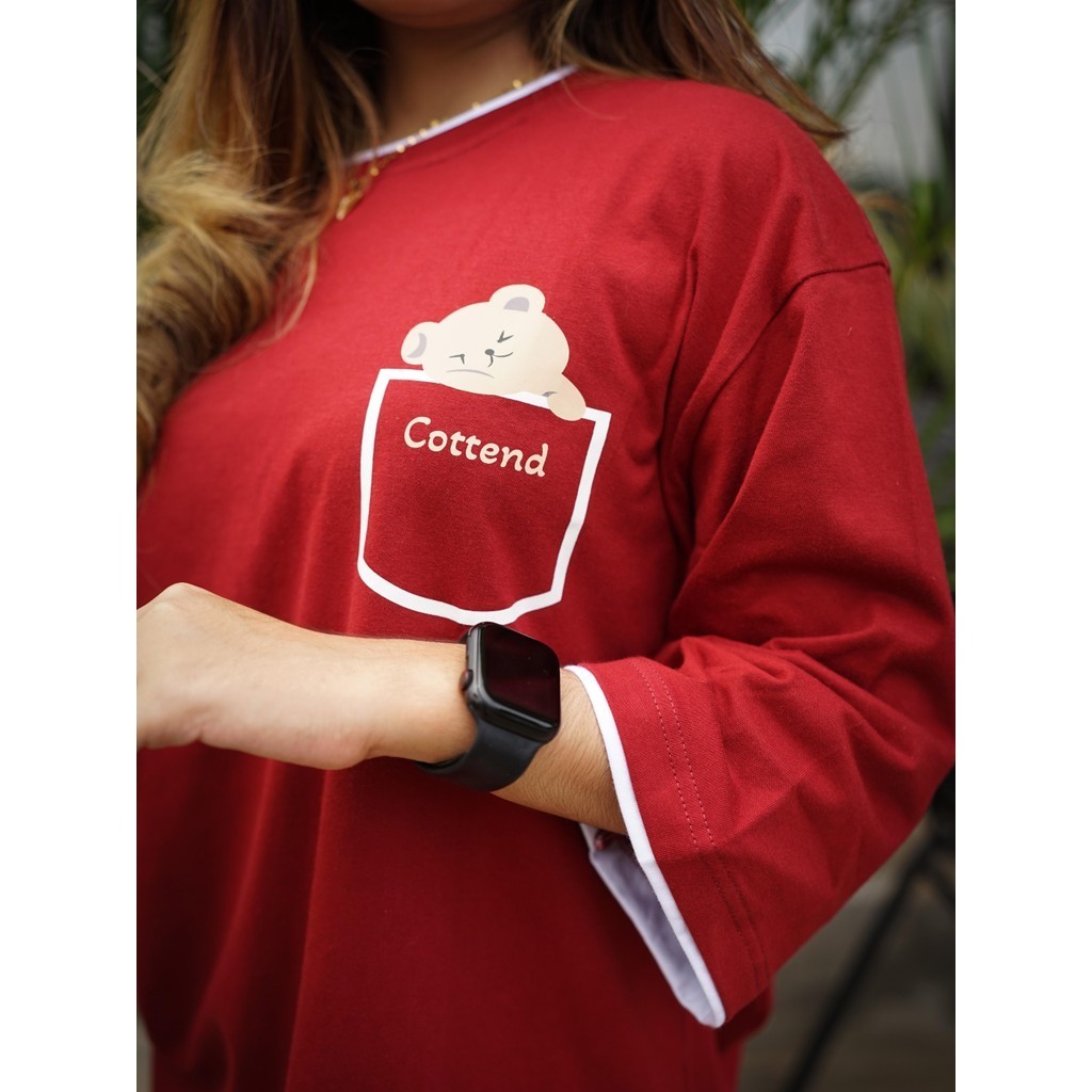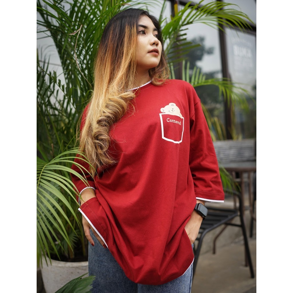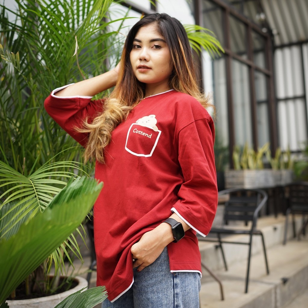 COTTEND OVERSIZED MARUN DL BEAR BAJU KAOS ATASAN WANITA TANGAN 3/4 BAHAN KATUN COMBED TEBAL ADEM NYAMAN SEHARI HARI