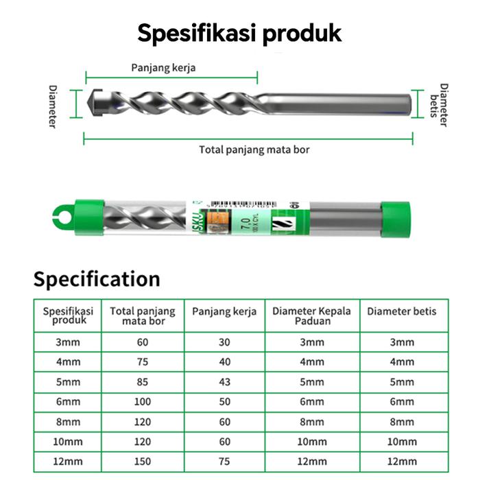 PROMO TERBATAS ISKU MATA BOR BETON HSS MEMUTAR BOR MATA BOR BAJA TINGGI 4MM 12 MM 4MM