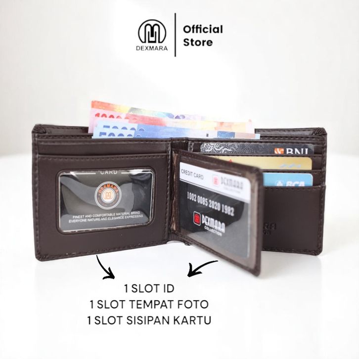 kantong pria kulit original DEXMARA kantong Pria Lipat Dua Bahan Kulit Sintetis PVC DM 03S | Hitam Cokelat | Banyak Slo