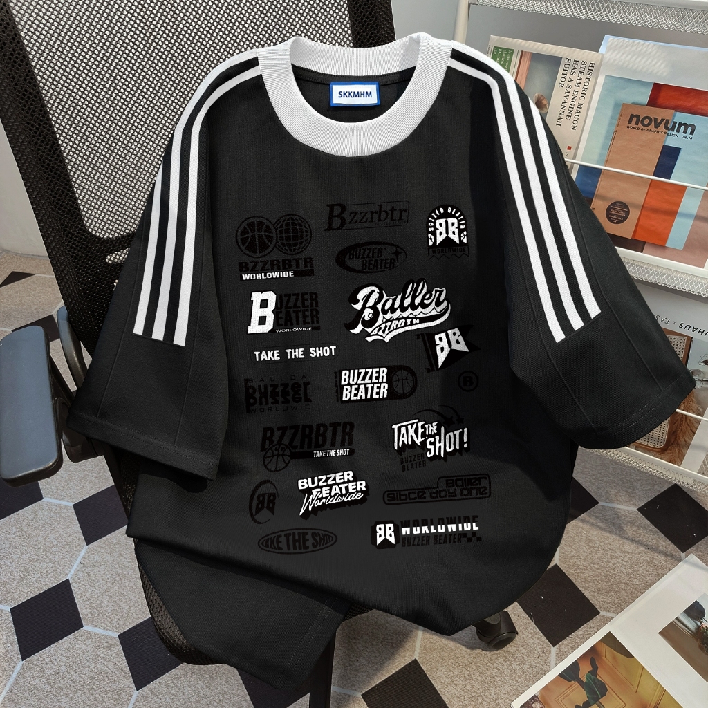XZHAINV KAOS PENDEK SANTAI DENGAN POLA CETAK HURUF UNTUK WANITA/PAKAIAN WANITA LENGAN PENDEK PUTIH GAYA MODERN /ATASAN KATUN TIGA GARIS KONTRAS VERSI KOREA