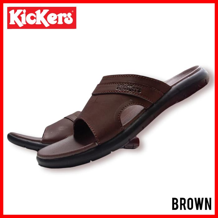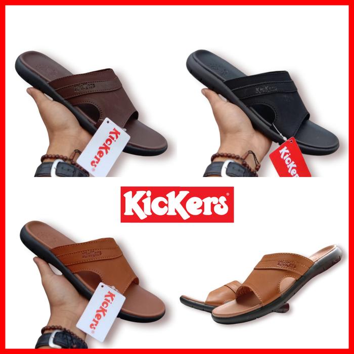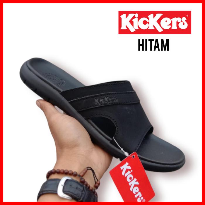 FLASH SALE SENDAL PRIA KICKERS SANDAL KULIT ASLI SANDAL SELOP COWOK FORMAL HITAM 39
