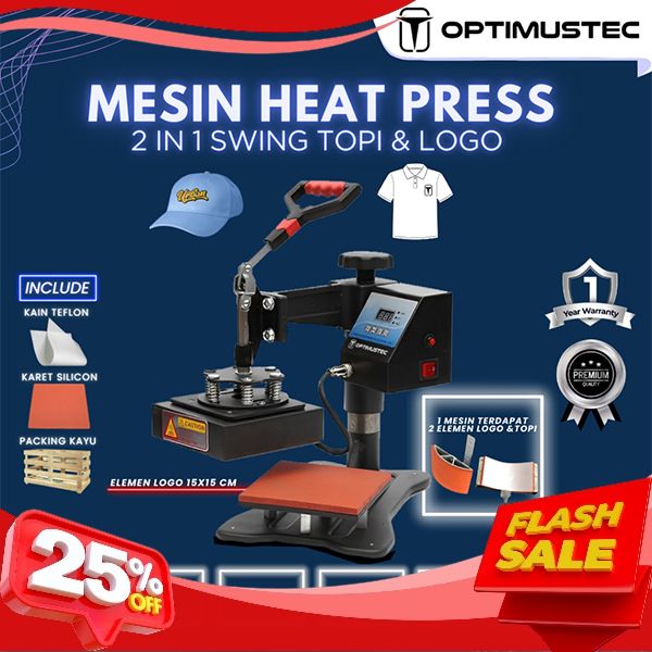 [Mall] OPTIMUSTEC Mesin Press Sablon Swing 2in1 Logo 15x15 & Topi 8x15 All Varian
