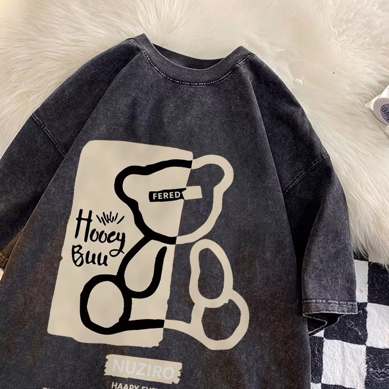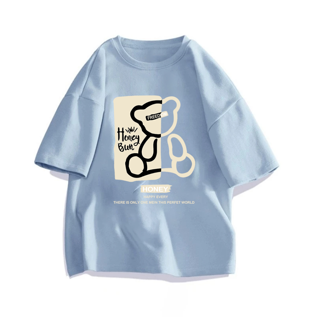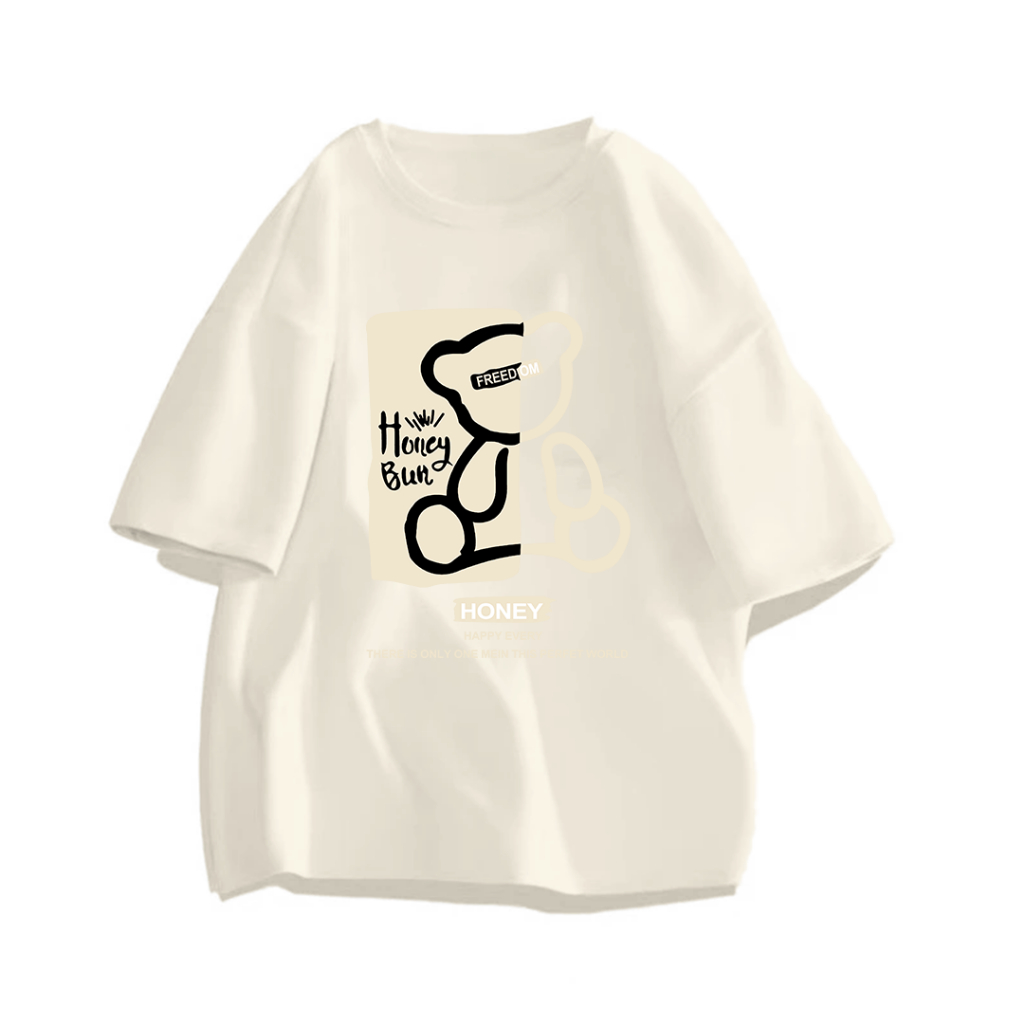 WASHED TSHIRT LENGAN PENDEK KAOS OVERSIZE KOREAN STYLE TERBARU KAOS HONEY BUN (BERUANG) BAHAN 100 COTTON