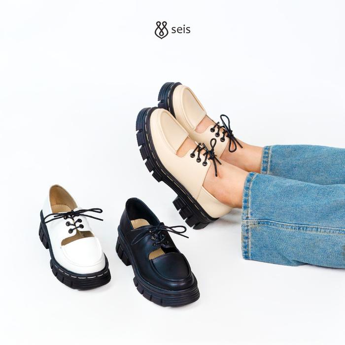 Seis Maggie Sepatu Oxford Wanita / Loafers Wanita Shoes - White, 36
