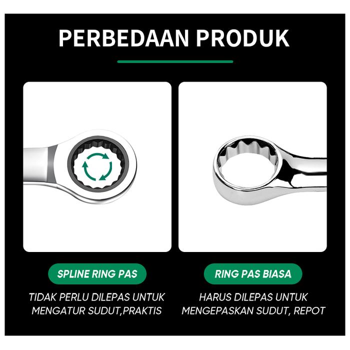 PROMO TERBATAS ISKU KUNCI RING PAS RACHET 8 10 12 13 14 17 18 19MM BESI TAHAN KARAT BAHANRATCHET WRENCH 72GIGIKUNCI RING PAS BOLAK BALIKKUN