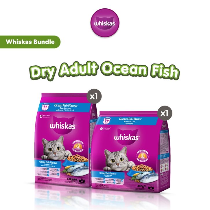 SPESIAL BUNDLE 1.6 KG Whiskas Makanan Kering Dewasa Rasa Ocean Fish 1.2kg + 480gr