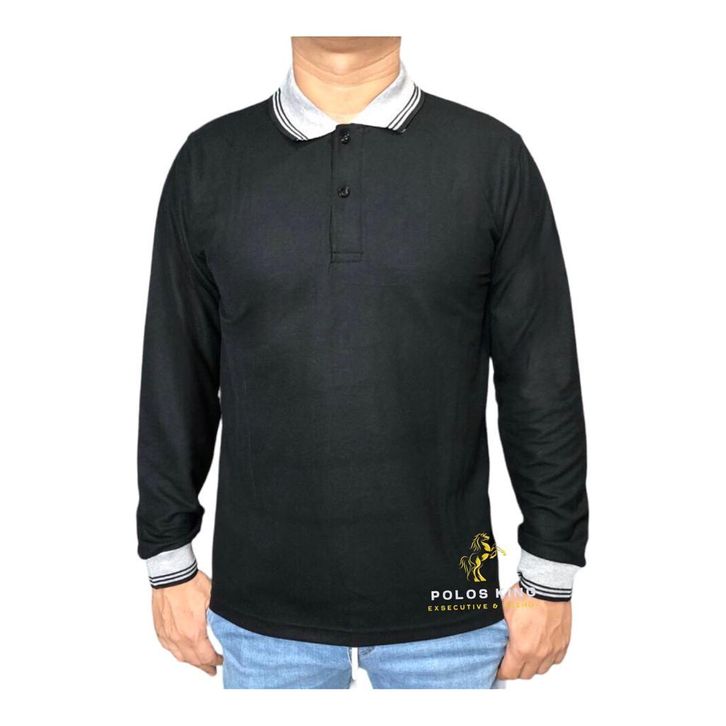Polos King Kaos Polo Shirt Polos Kaos Kerah Pria / Lengan Panjang Kombinasi Abu Misty