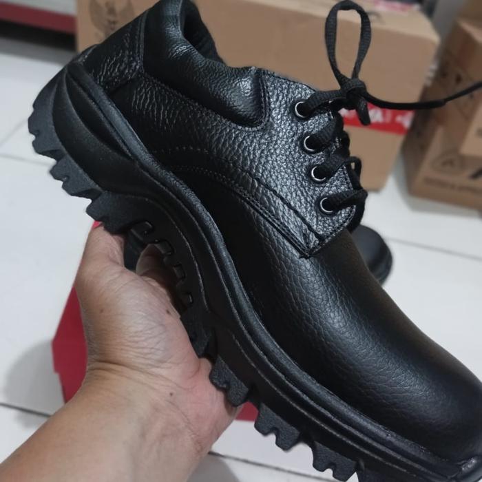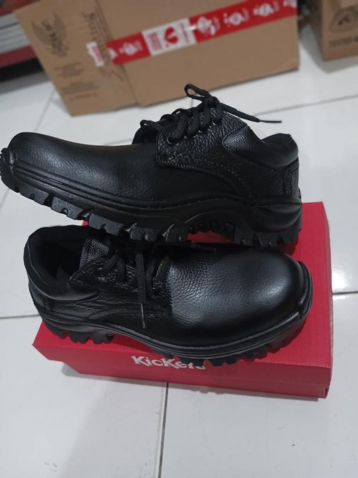 FLASH SALE SEPATU SAFETY KICKERS KULIT ASLI SAPI PRIA SOL SUDAH JAHIT KELILING HITAM 39