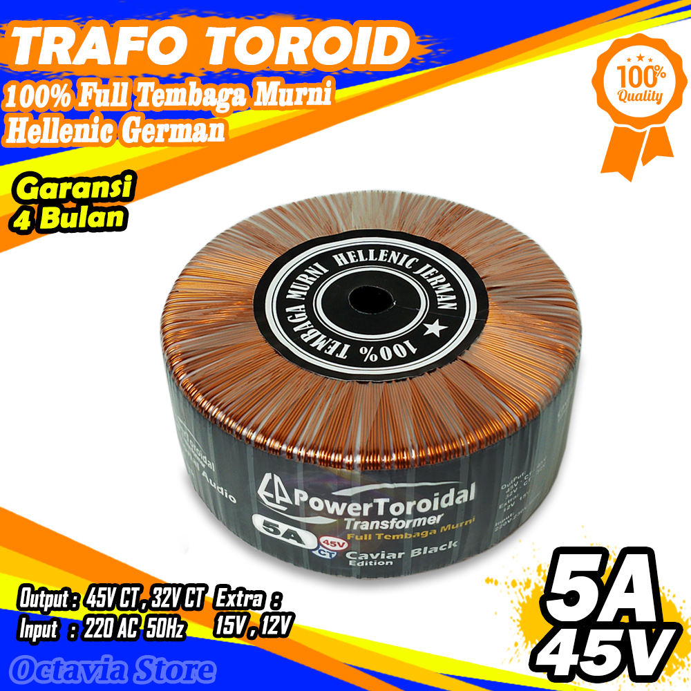 Trafo Toroid 5A 45V CT 32V CT MURNI (Trafo BESAR) Full Tembaga Murni Hellenic German Kualitas Super