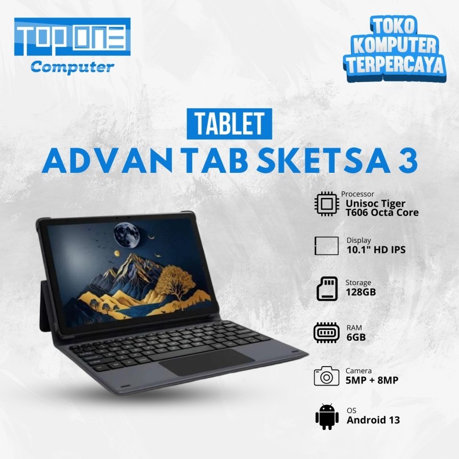 Advan Tab Sketsa 3 10.1” HD IPS 128GB+RAM 6GB Tiger T606 Android Tablet Advan Dual Mode Desktop Mode Free Stylush Pen