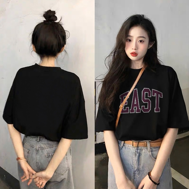 FORTEID KOREAN STYLE BAJU KAOS OVERSIZE CORAK HURUF PRINTING BAJU ATASAN WANITA PRIA HITAM KAOS OVERSIZE WANITA/BAJU KAOS OVERSIZE WANITA
