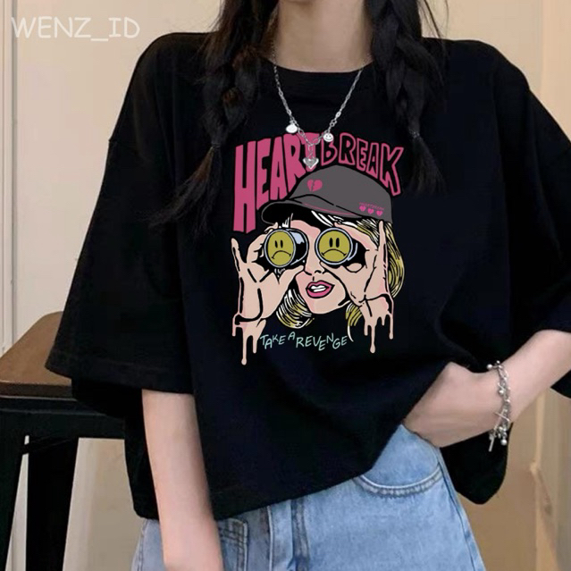 BAJU KAOS CEWEK KOREAN WANITA RETRO STYLE SADNESS WOMAN PRINT ATASAN KAOS CEWEK KEREN OVERSIZE TEE OOTD