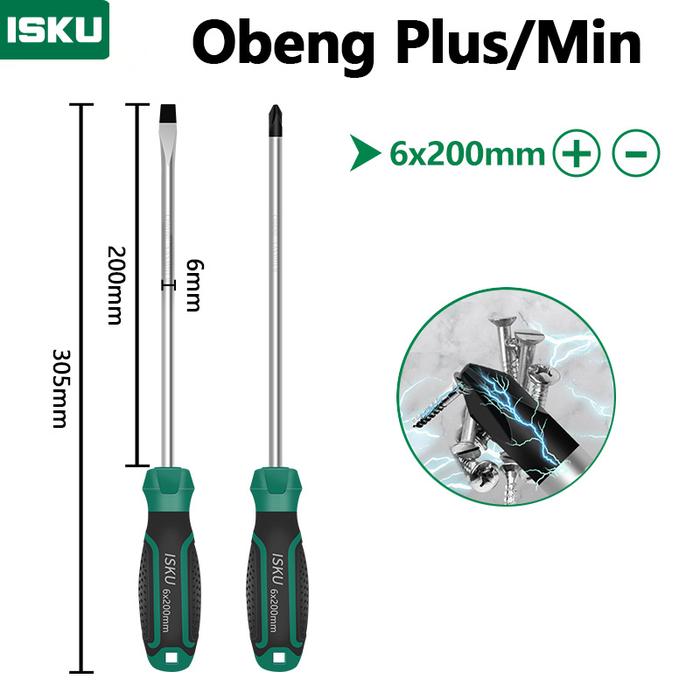 PROMO TERBATAS ISKU OBENG SET 2PCS 6200 MM PLUS MINUS SCREWDRIVER SET TIP MAGNETIK