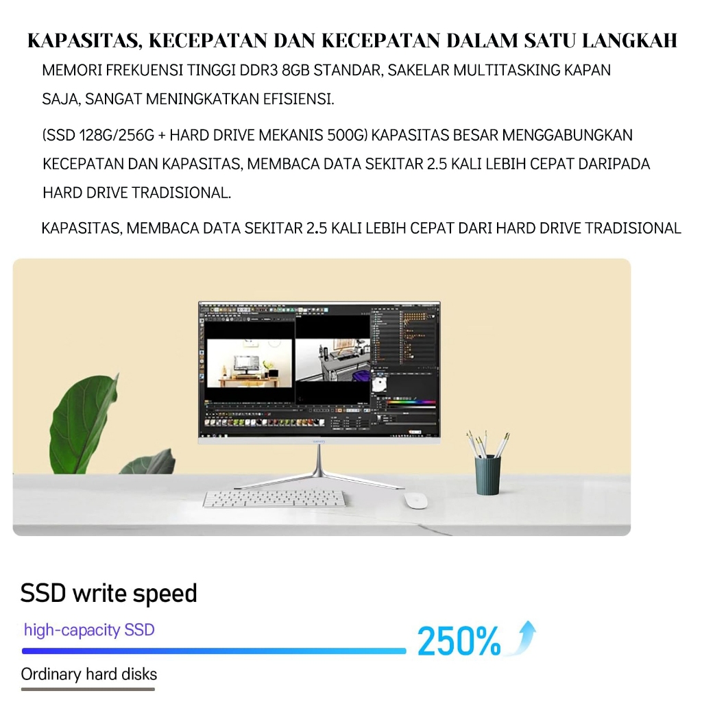 ASVS All-in-One Baru Komputer PC ,komputer kantor Intel Core i3/i5,RAM8G,SSD 128GB/256G+HDD 500G,Untuk Rumah, Belajar, K
