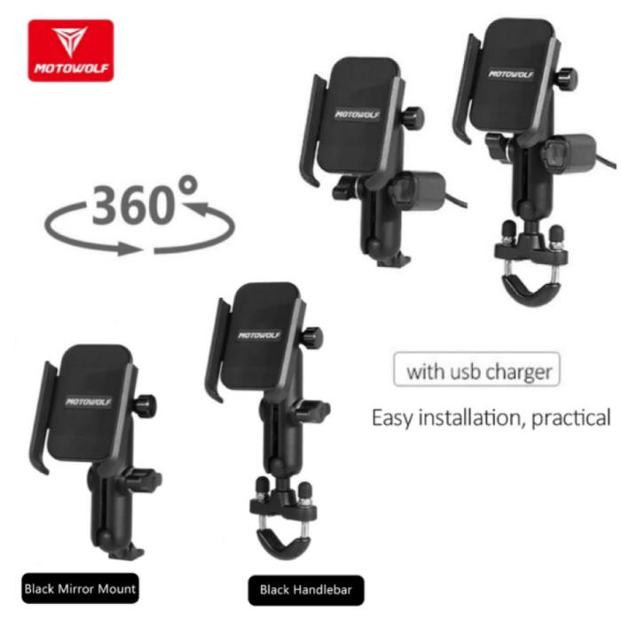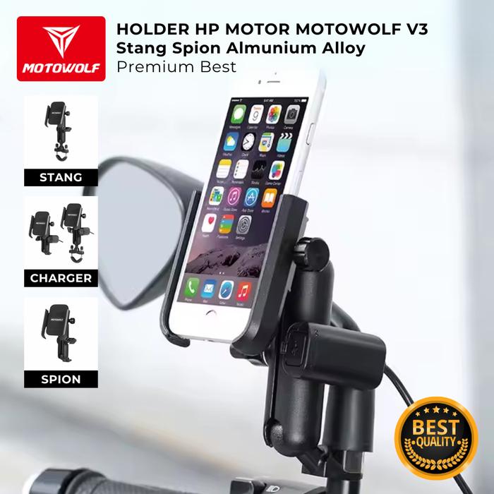 FLASH SALE HOLDER HP MOTOR MOTOWOLF V3 STANG SPION ALMUNIUM ALLOY PREMIUM HITAM SPION