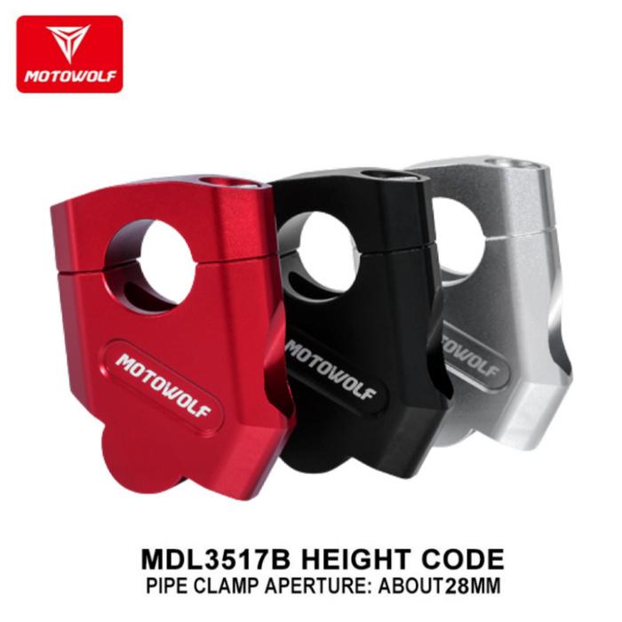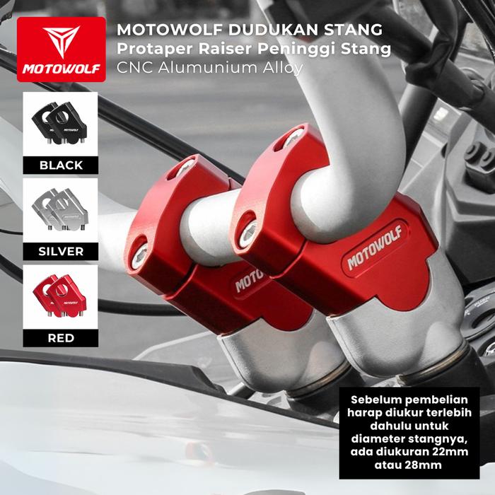 FLASH SALE MOTOWOLF DUDUKAN STANG PROTAPER RAISER PENINGGI STANG MOTOR CNC ALMUNIUM ALLOY 22MM BLACK