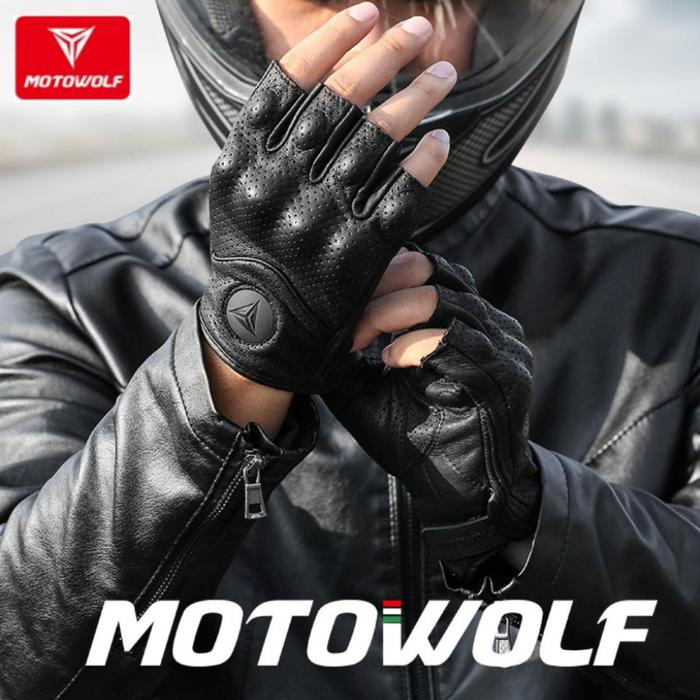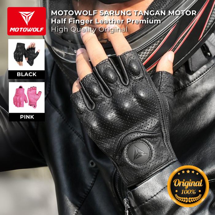 FLASH SALE MOTOWOLF SARUNG TANGAN MOTOR HALF FINGER LEATHER PREMIUM BLACK M