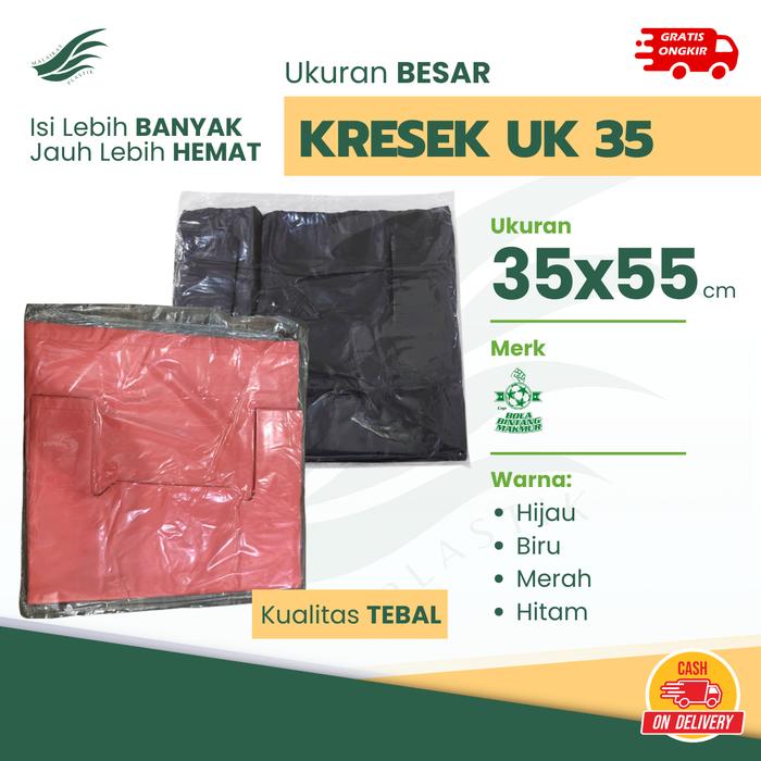 PROMO TERBATAS KANTONG PLASTIK KRESEK WARNA CAP BOLA BINTANG UK 35X55 CM PLASTIK KRESEK PACK UK 35 WARNA MERAH HIJAU BIRU HITAM HITAM