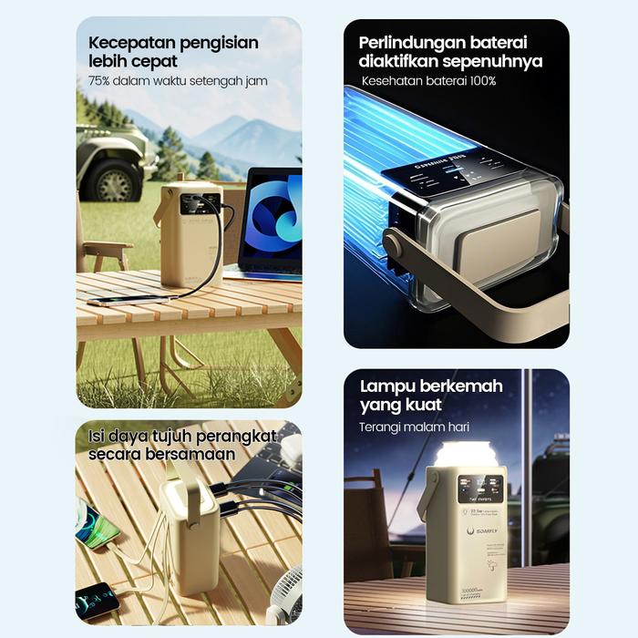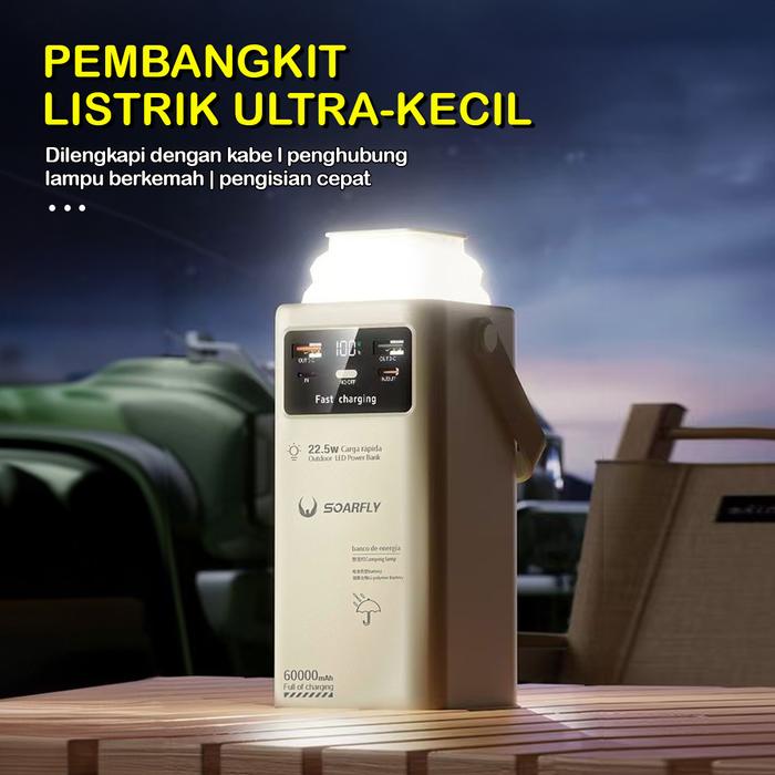 PROMO TERBATAS SOARFLY 60000MAH 225W OUTDOOR POWER PENGISIAN CEPAT LUAR RUANGAN POWER BANK KAPASITAS BESAR LAMPU BERKEMAH PORTABEL DENGAN 4