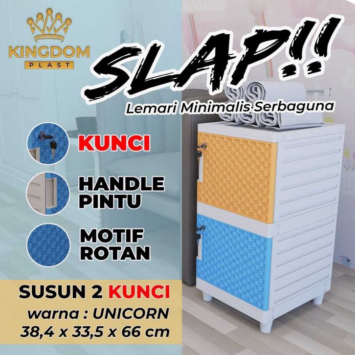 Lemari Pakaian Plastik Slap Walnut Pintu Laci 2 Susun MURAH ELEGANT KUAT KOKOH KUNCI