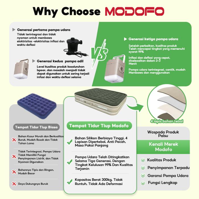 PROMO TERBATAS MODOFO OUTDOOR MATRAS KASUR POMPA OTOMATIS MATRAS POMPA KASUR TIDUR OUTDOOR PORTABLE TIDUR ANGIN BISA TAHAN 20018040 INFLA