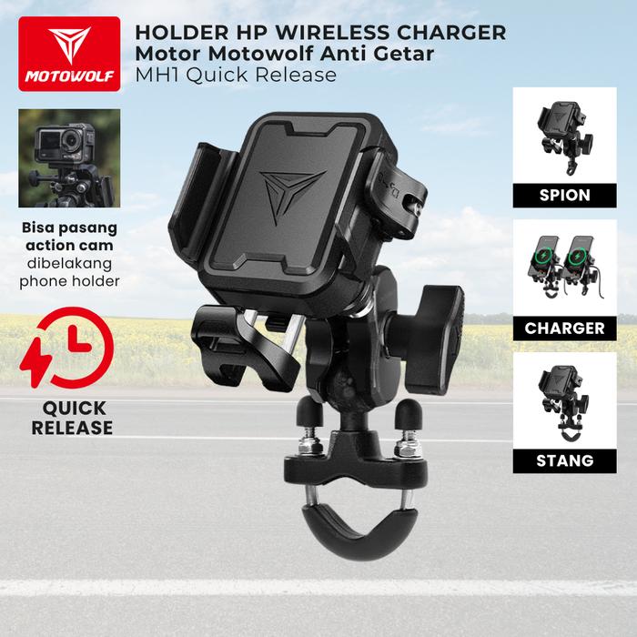 FLASH SALE HOLDER HP WIRELESS CHARGER MOTOR MOTOWOLF ANTI GETAR MH1 QUICK RELEASE SPION BLACK
