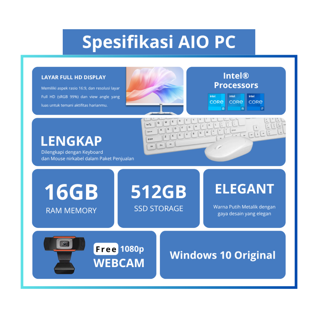 Komputer Full PC All-in-One Baru Terbaru HD Super Tipis Intel Core i3/i5 Untuk Rumah, Belajar, Kantor, Gaming dan Hibura