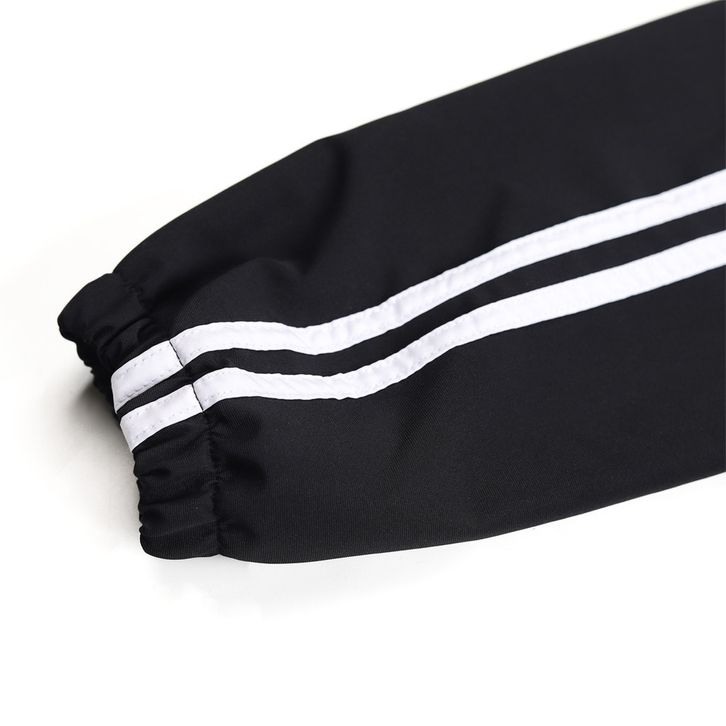 Jaket Pria Wanita Welldone Track Jacket Warna Hitam Unisex Bahan Taslan Garis Garis Distro Original
