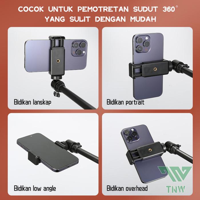 FLASH SALE TNW OVERHEAD STAND TRIPOD HP + LED LAMPU STAND HOLDER BRACKET 360° OVERHEAD TRIPOD LAMPU PHONE HOLDER FOTOGRAFI OVERHEAD TRIPOD