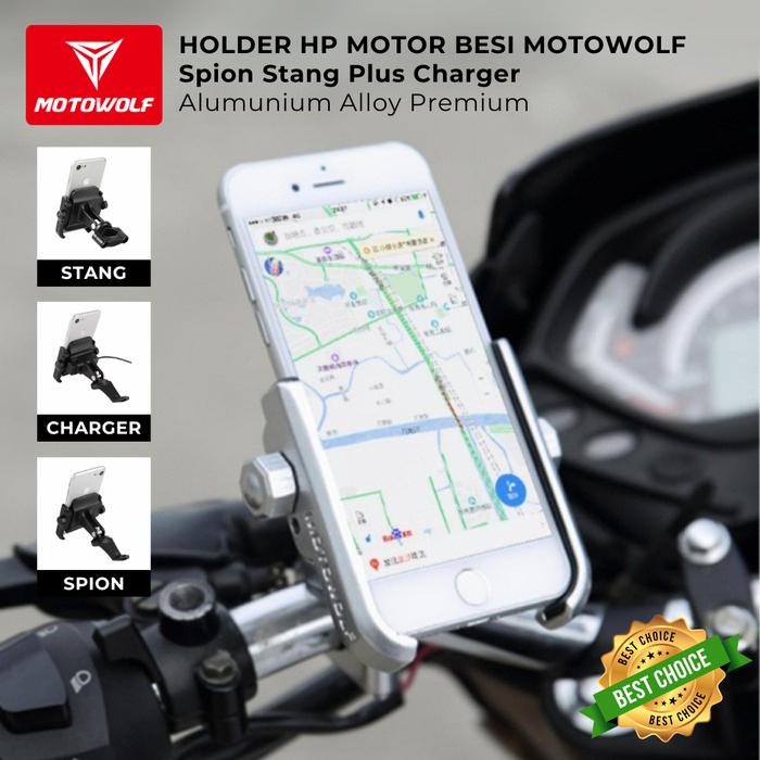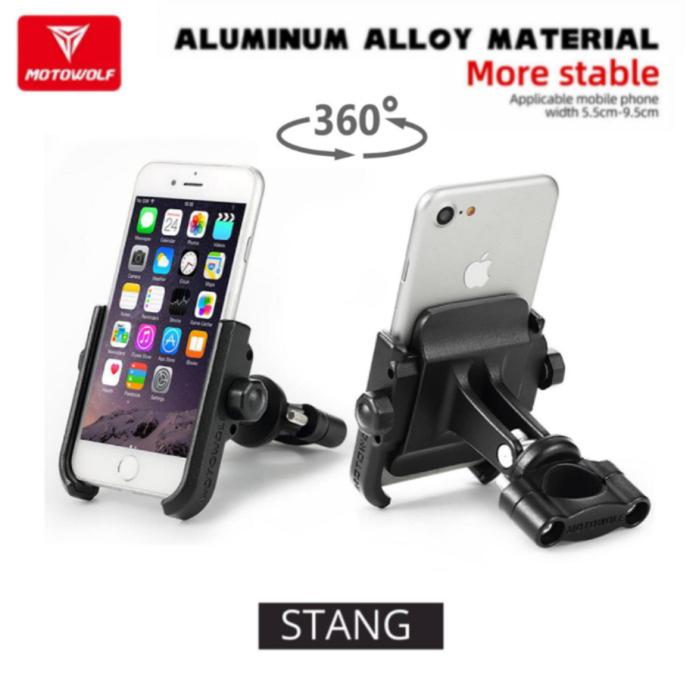 FLASH SALE HOLDER HP MOTOR BESI MOTOWOLF SPION STANG PLUS CHARGER ALMUNIUM ALLOY PREMIUM STANG HITAM