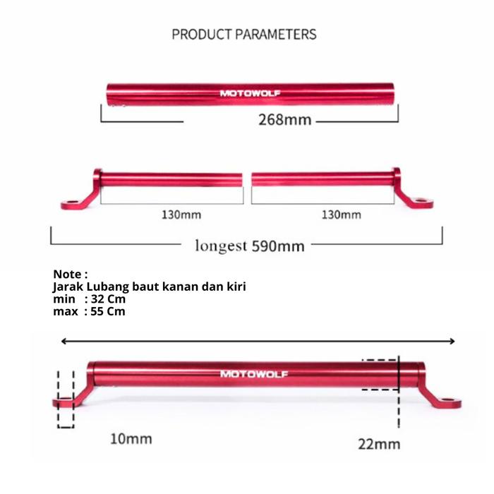 FLASH SALE MOTOWOLF CROSSBAR BREKET MOTOR SPION UNIVERSAL MULTIFUNGSI RED