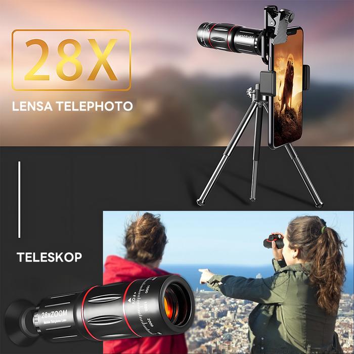 PROMO TERBATAS APEXEL 28X36X KIT LENSA KAMERA PONSEL 28X LENSA PONSEL MAKRO FISHEYE SUDUT LEBAR UNTUK SMARTPHONE LENSA TELEZOOM HP UNIVERSA