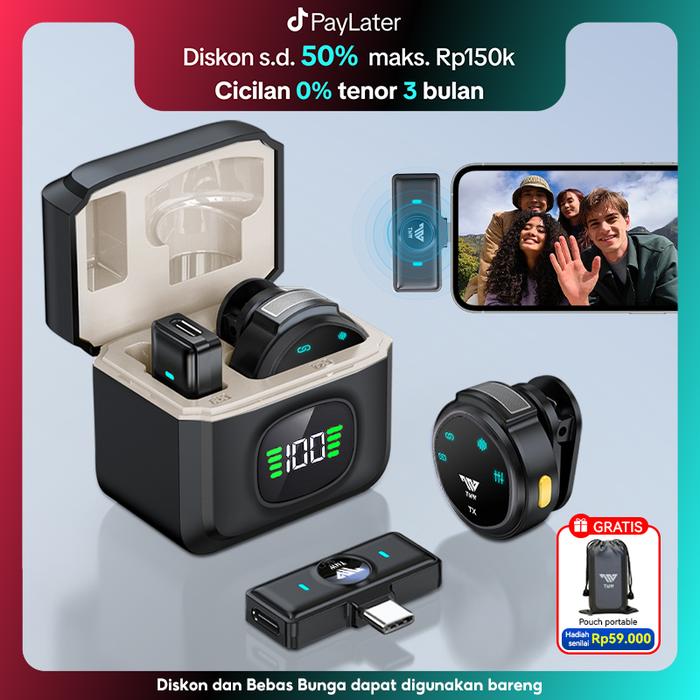 FLASH SALE TNW A28 WIRELESS MICROPHONE MAGNETIC CLIP ON MIC LAVALIER MICROPHONE HP PLUG & PLAY NIRKABEL MIKROFON WITH CHARGING CASE A28