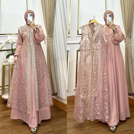 Femes Naura Dress Maxy Wanita Dewasa Muslim Fit To XL Besar Premium OOTD Lebaran l Pesta Kondangan
