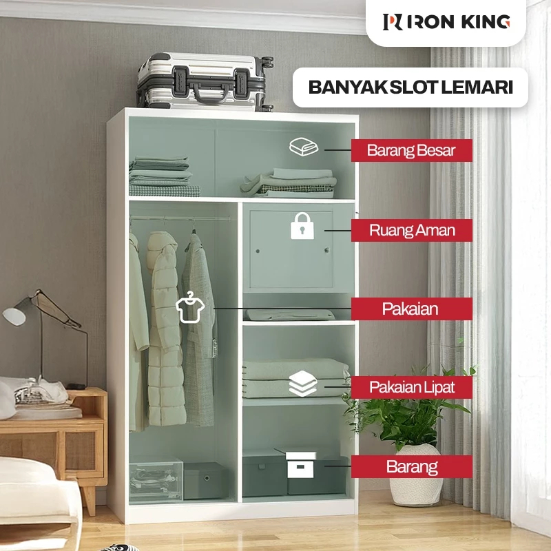 [Mall]Lemari Pakain Besi Lemari Pakaian Besi 2 Pintu Sliding Lemari Pakaian Besar Jumbo Lemari Pakain Best Seller