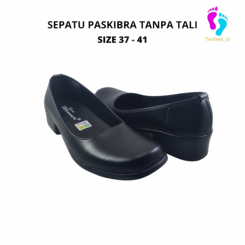SEPATU PASKIBRA WANITA TANPA TALI - SEPATU PASKIB WANITA TANPA TALI - SEPATU PANTOFEL- SEPATU WANITA PANTOPEL HITAM SIZE 37 - 41 - TWOFEET_ID