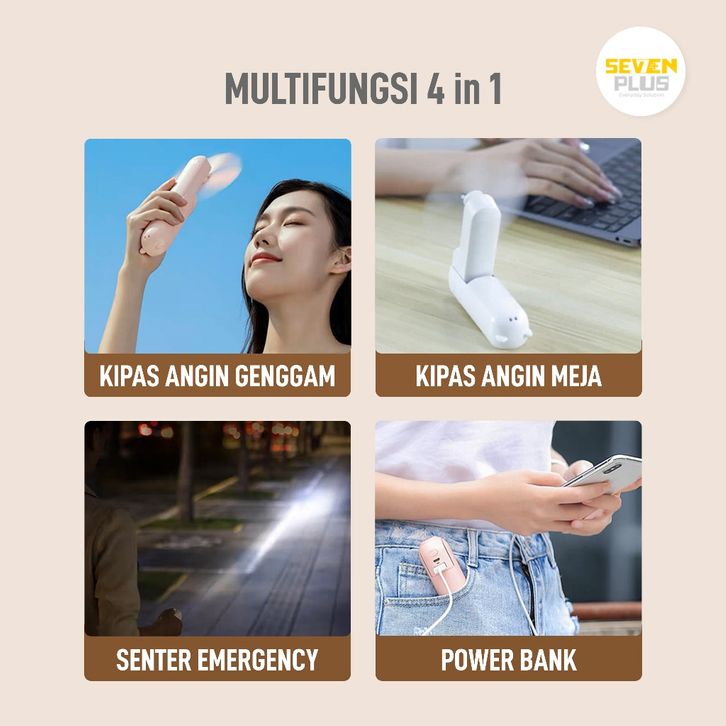 kipas portable SevenPlus Kipas Angin Mini Portable Original 4800mAh Multifungsi Charge USB kipas angin super mini gengg