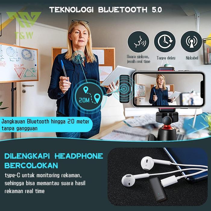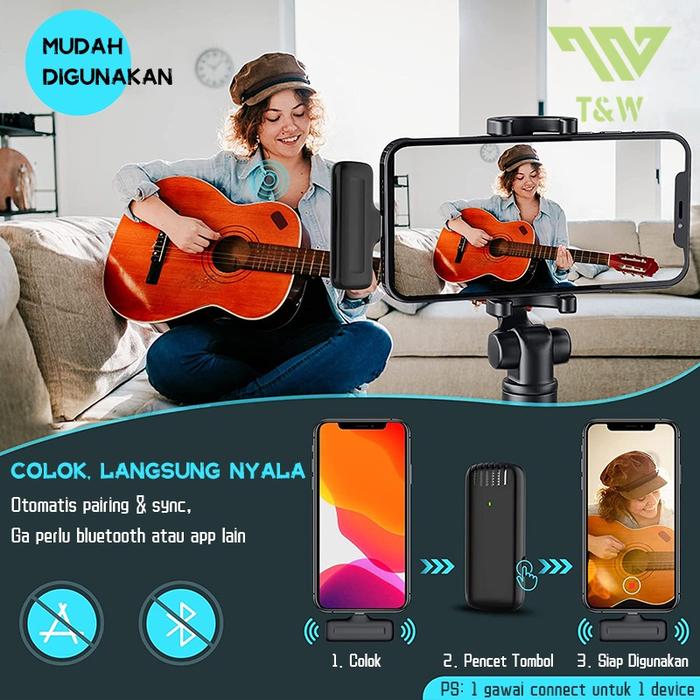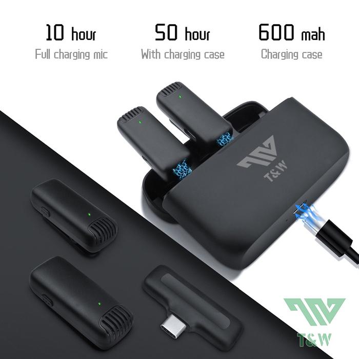 FLASH SALE TNW X9 WIRELESS MICROPHONE MIKROFON NIRKABEL LAVALIER MICROPHONE DENGAN KOTAK PENGISIAN DAYA MINI MIC UNTUK PONSEL LIVESTREAMING VLOG HITAMTYPE C
