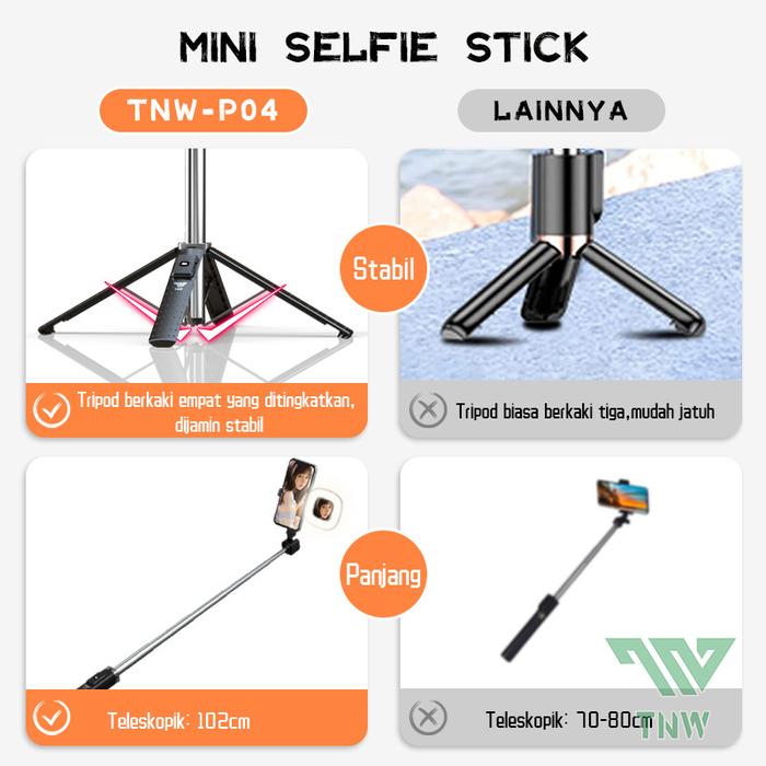 FLASH SALE TNW P04 MINI SELFIE STICK TONGSIS BLUETOOTH TRIPOD 4IN1 TONGSIS PORTABLE REMOTE DAN LAMPU SOROT LAMPU SOROT PERSEGI