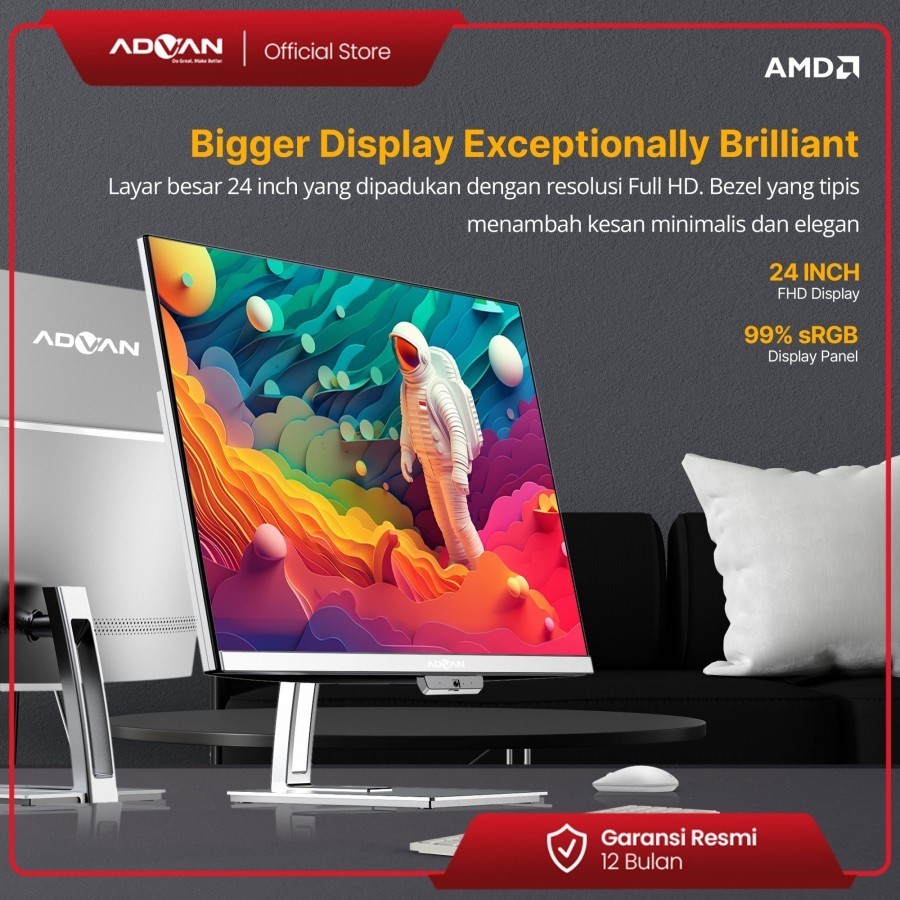 ADVAN AIO ONE PC RYZEN 5 3500 8GB 512GB W11+OFFICE PERMANEN 24.0FHD 99 SRGB GARANSI RESMI INDONESIA