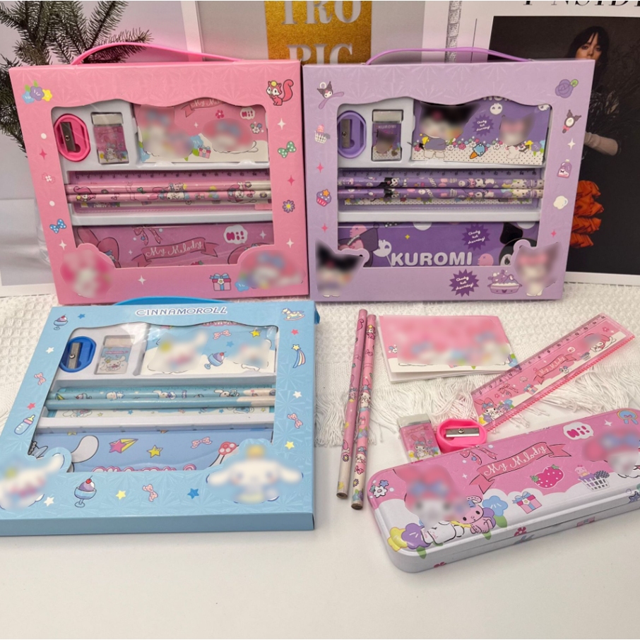 FIVEVOO Alat Tulis Anak Tk / Kotak Pensil Anak Set / Tempat Pensil Anak Perempuan Sanrio / Kotak Pensil Kuromi Squi/ Had