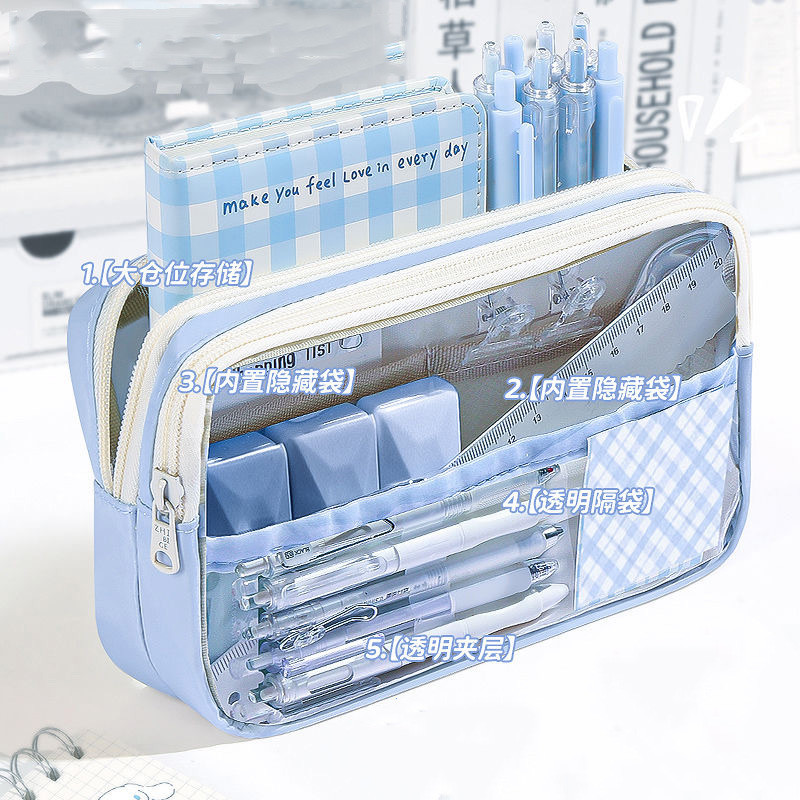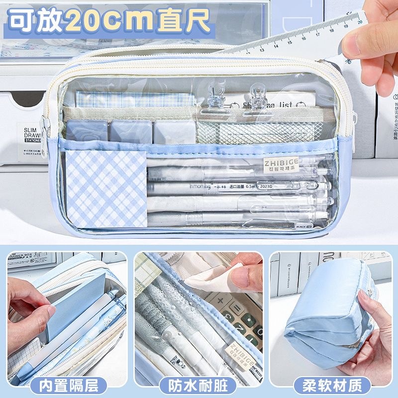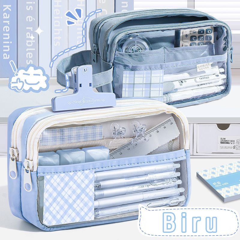Kotak Pensil Aesthetic Tempat Pensil Transparan Besar Bergaya Korea Pensil Case Tempat Penyimpanan Alat Tulis Sekolah Ae